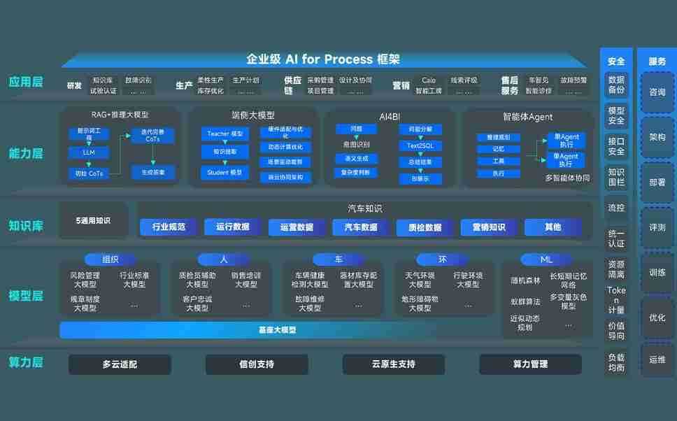 至尊国际问学智车解决方案是一套基于AI技术的汽车行业智能化系统,,,,覆盖从底层算力到顶层AI应用的全栈方案。。。。方案由算力层、、模型层和应用层组成:算力层,,方案支持多种一体机配置,,具备云端灵活部署、、多云适配以及动态优化计算资源的能力;模型层,,至尊国际问学平台版提供了企业级AI应用一站式构建与管理平台,,,,支持基于后训练强化技术的汽车企业专属模型的训练、、、评测和运营;应用层,,,,至尊国际问学DeepSeek版提供包括超级员工、、、、智能招采、、智能营销、、智能客服、、、、AI for BI等一系列解决方案,,,,可助力汽车行业实现数字化转型,,,让管理更智能、、、响应更敏捷。。